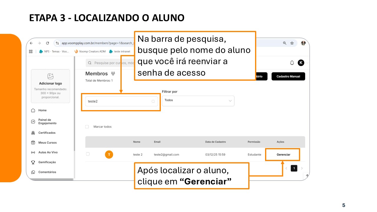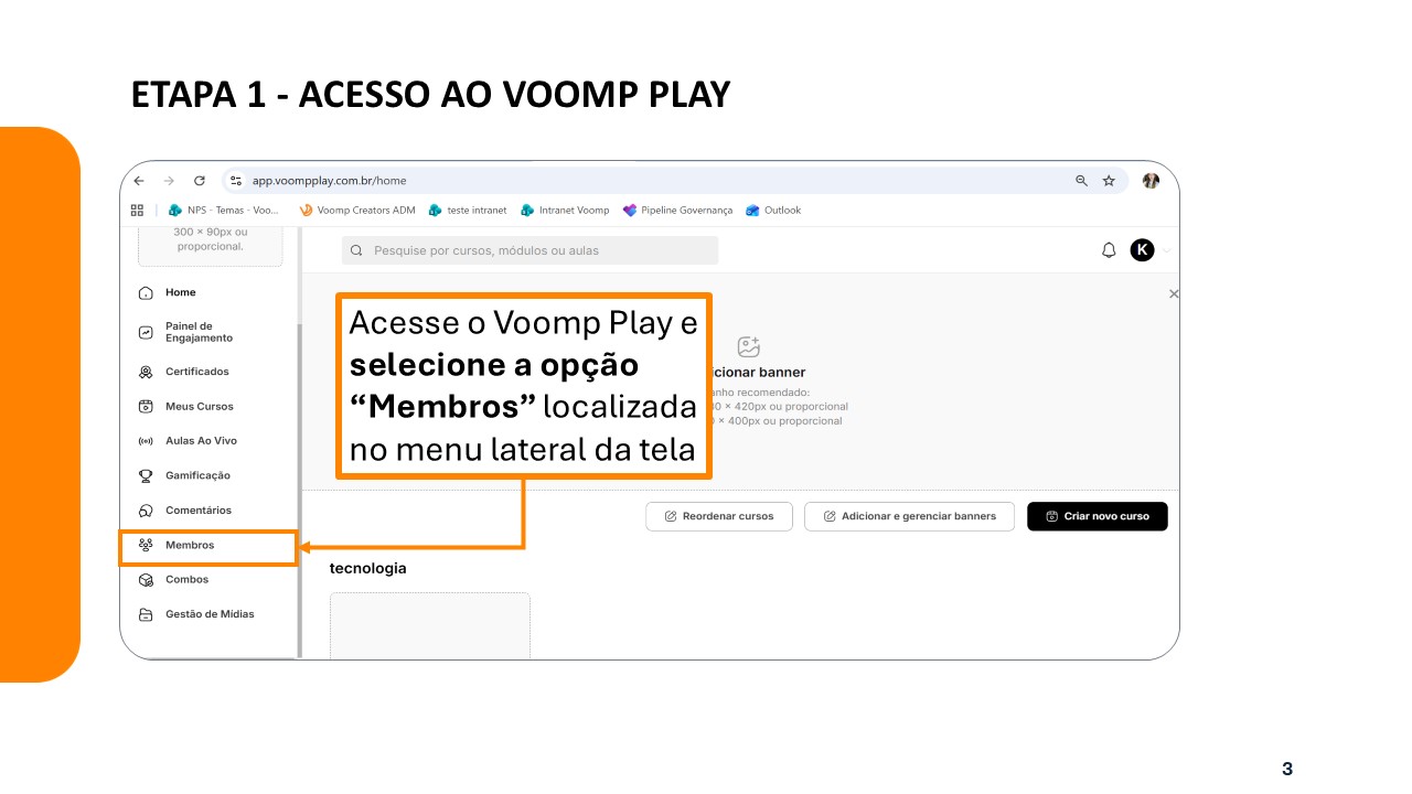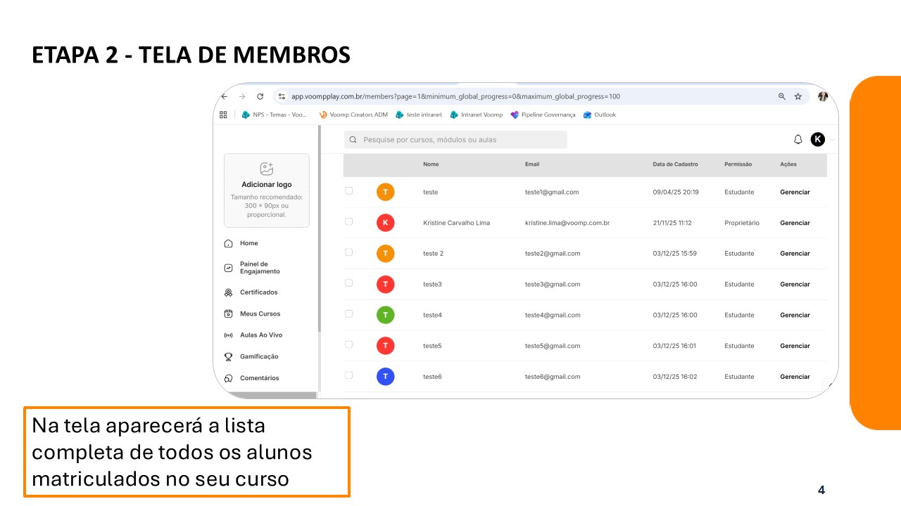 Link de acesso a tela de membros: https://app.voompplay.com.br/members