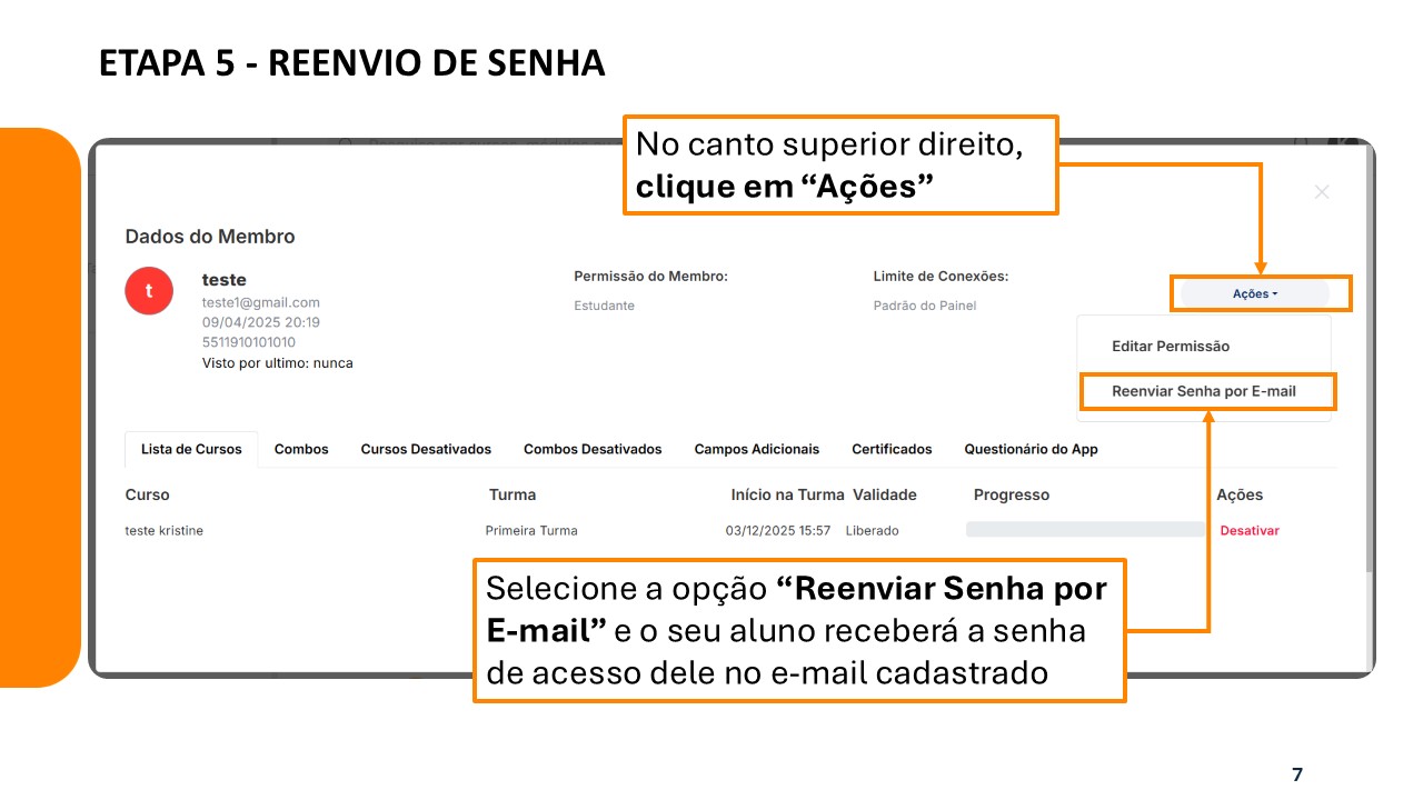 Quando devo reenviar a senha de acesso do Voomp Play ao aluno?