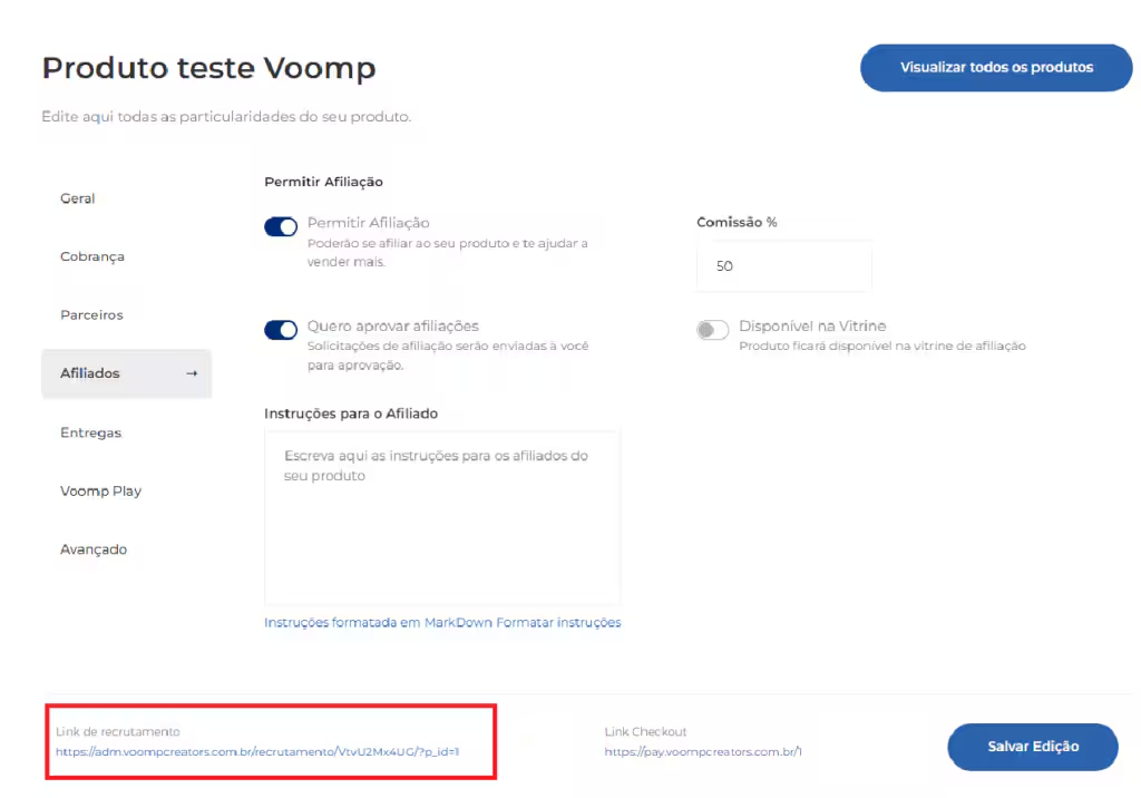 Após isso basta enviar o seu link para a pessoa que você gostaria de tornar afiliada de seu produto.