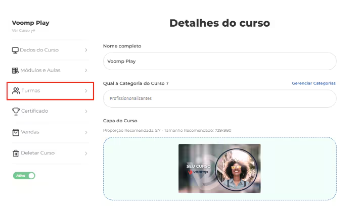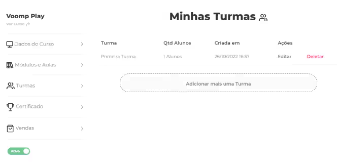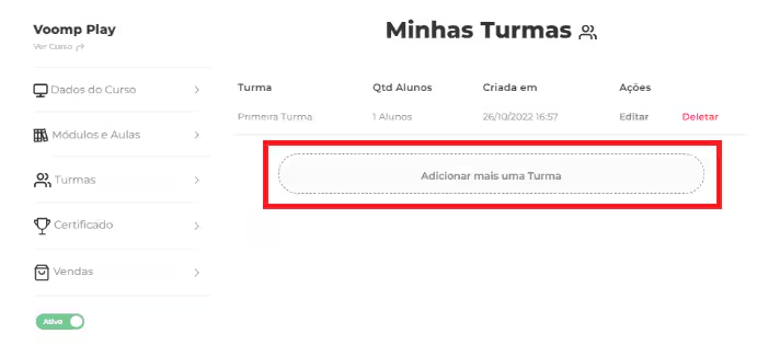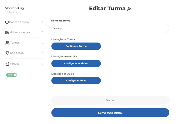 Para configurar uma turma no Voomp Play, basta seguir os passos indicados na plataforma.