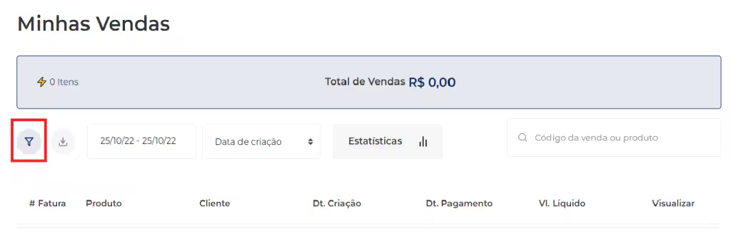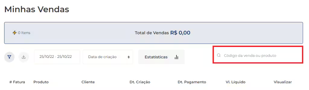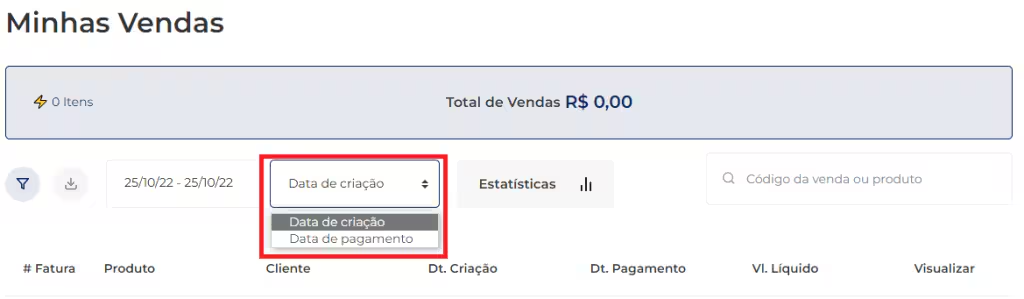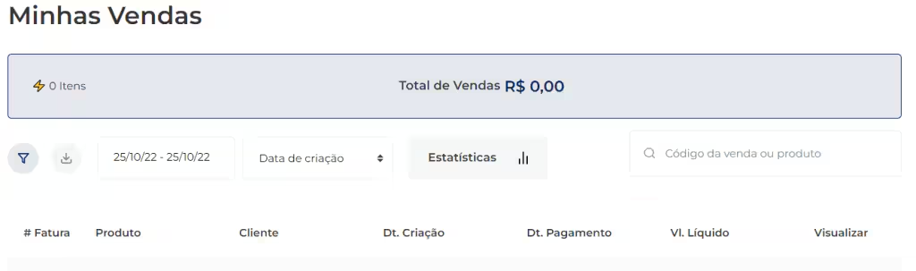 - Em seu dashboard, selecione a aba vendas e minhas vendas;