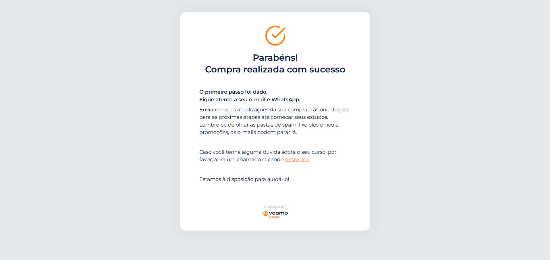 (página de obrigado padrão Voomp)