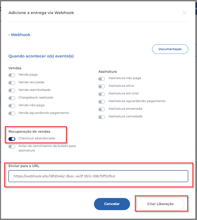 Para receber informações sobre os abandonos de carrinho enviamos disparos via webhook, sendo assim é necessário possuir uma plataforma de CRM externo para receber esses dados e posteriormente atuar de forma personalizada na recuperação de vendas, para seguir com esse processo siga os seguintes caminhos dentro da Voomp: Produtos>Editar Produto> Entregas>Adicionar Entregas>Sistemas Externos>Webhook> Checkout Abandonado e preencher com a URL de postback fornecida pela sua plataforma.