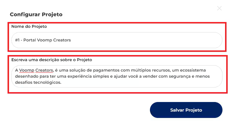 • Configurar projeto: Nesse campo aparecerá o nome e descrição do projeto.