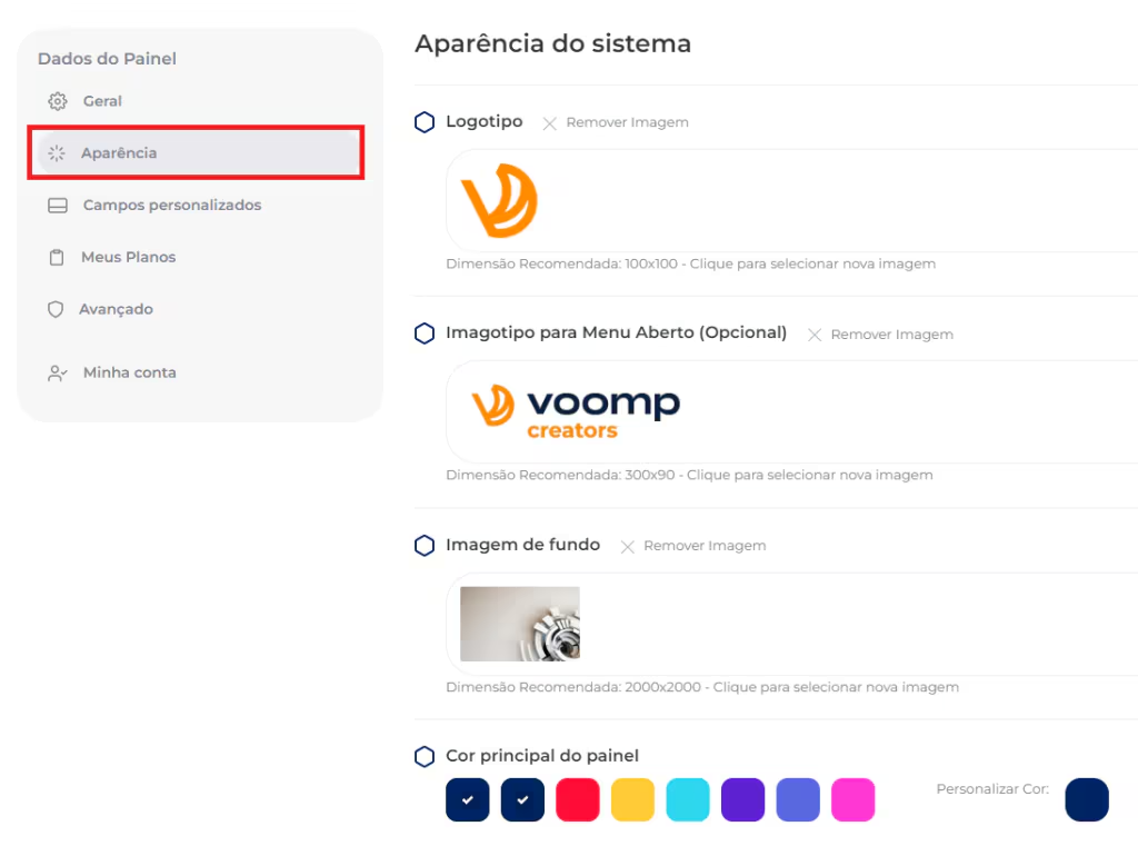 • Clique em Aparência