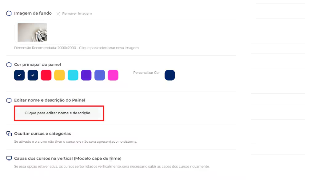 • Clique em editar nome e descrição do painel