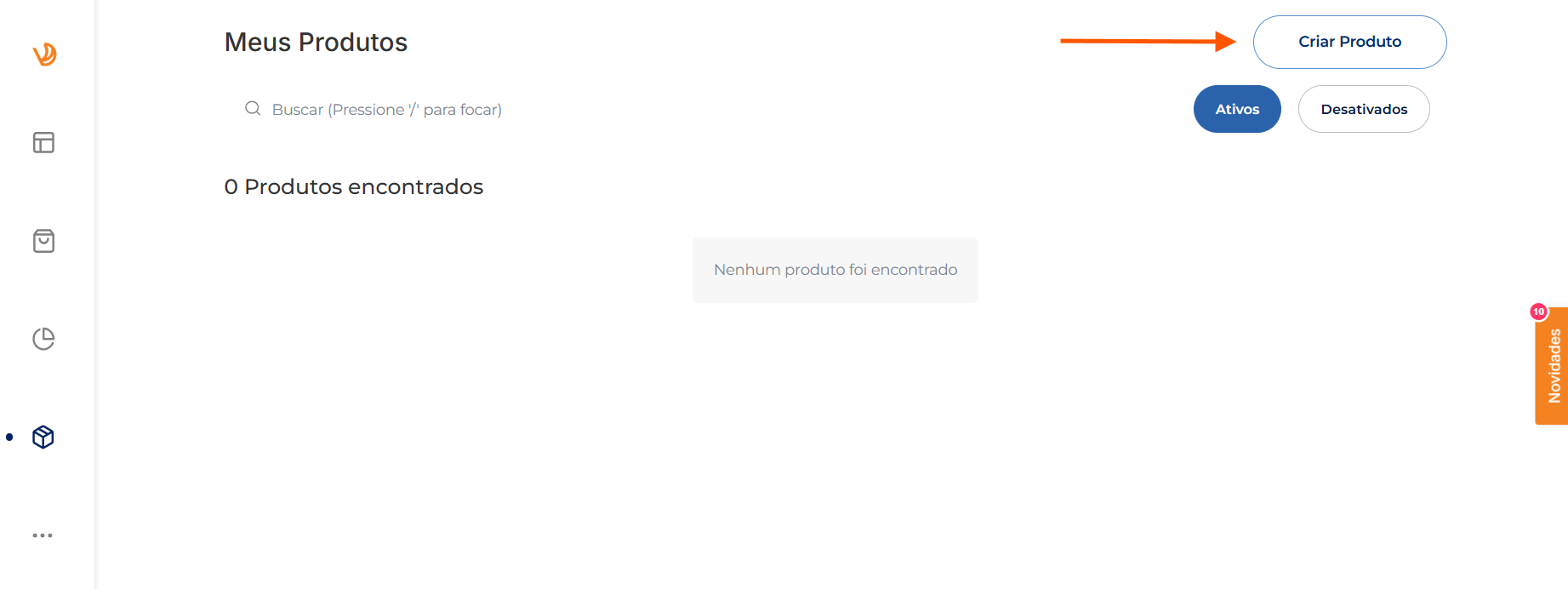 1. Passe o cursor do mouse sobre o menu lateral esquerdo e clique em “Produtos”:
