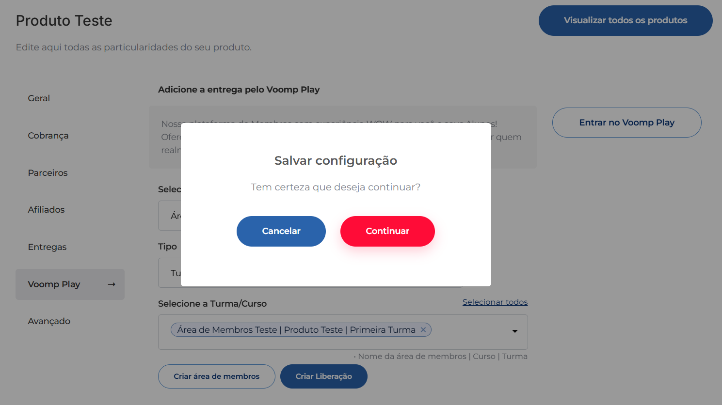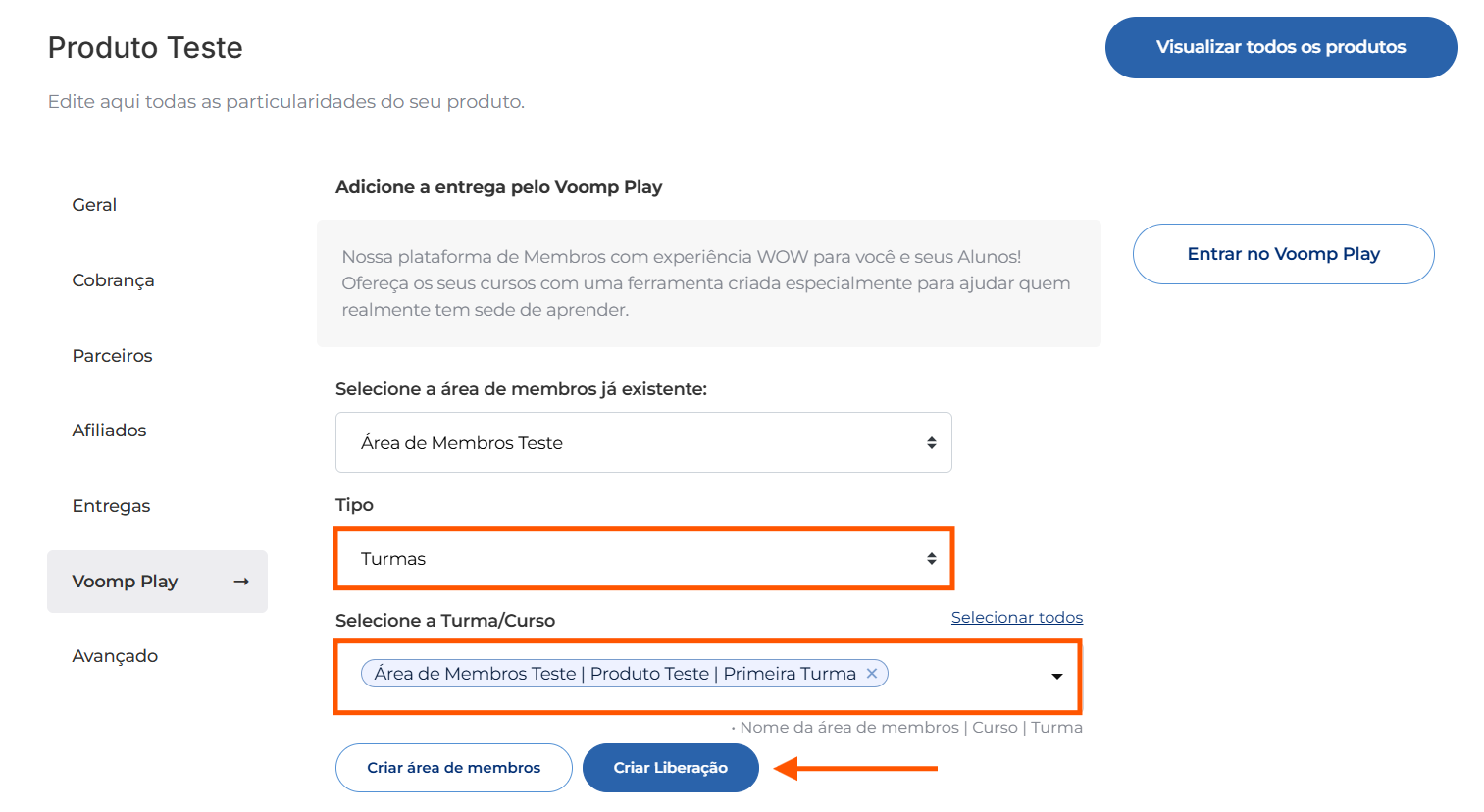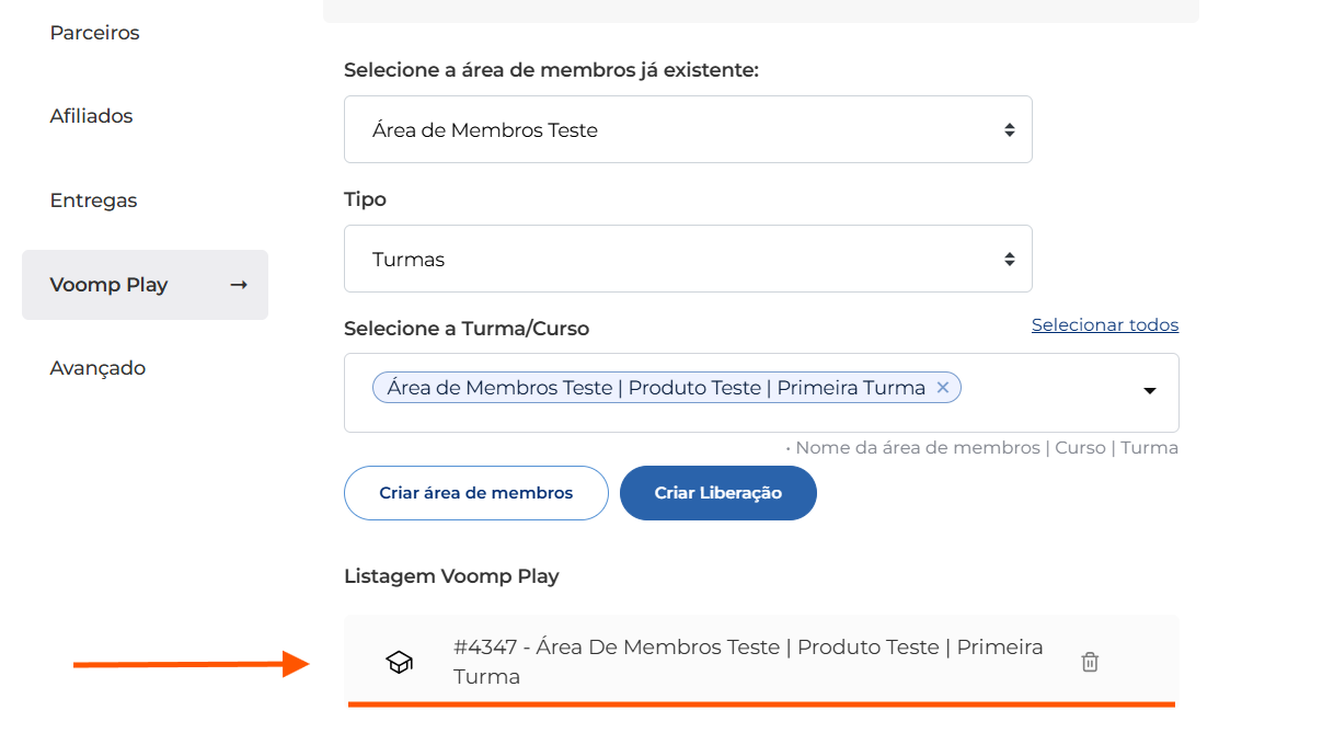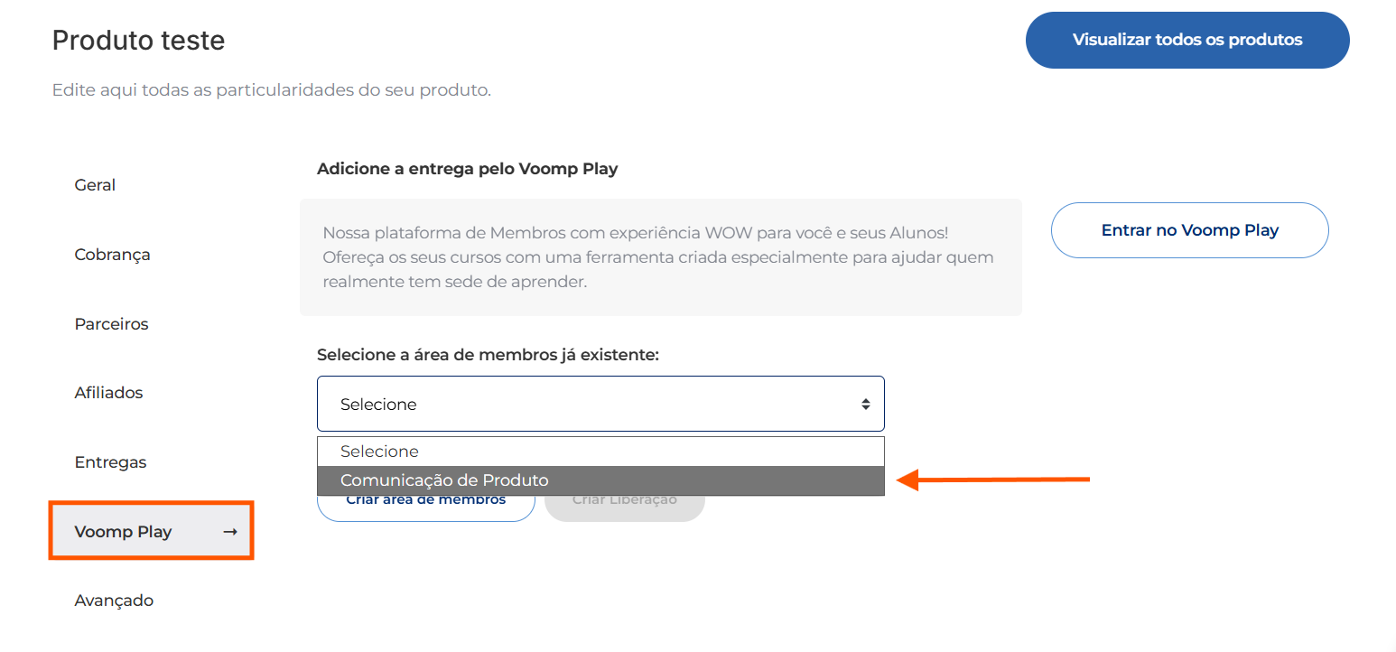 A integração do produto cadastrado na Voomp com o curso na área de membros do Voomp Play é uma etapa imprescindível.